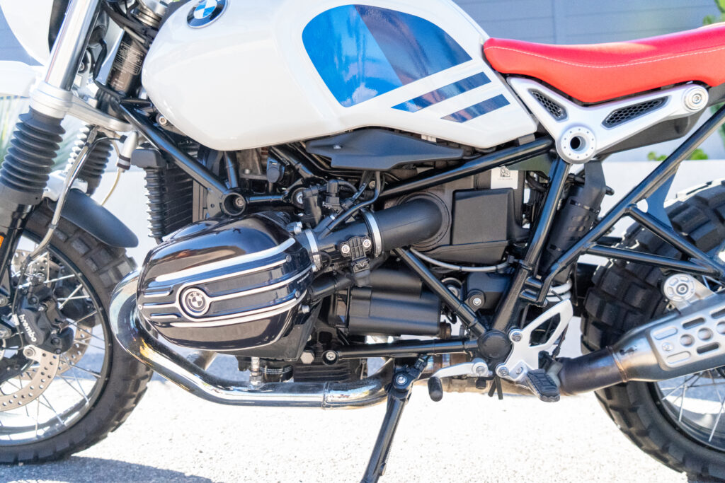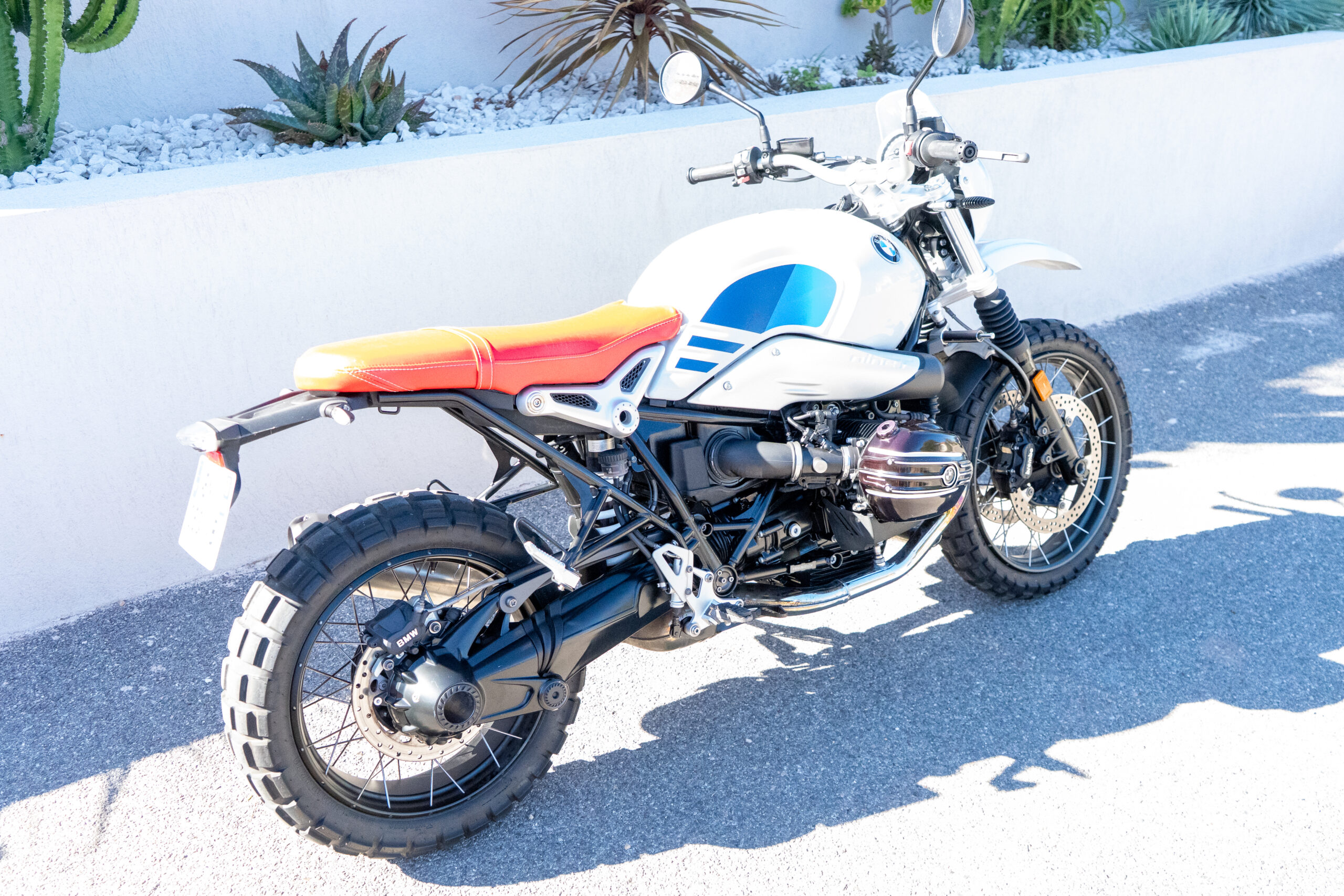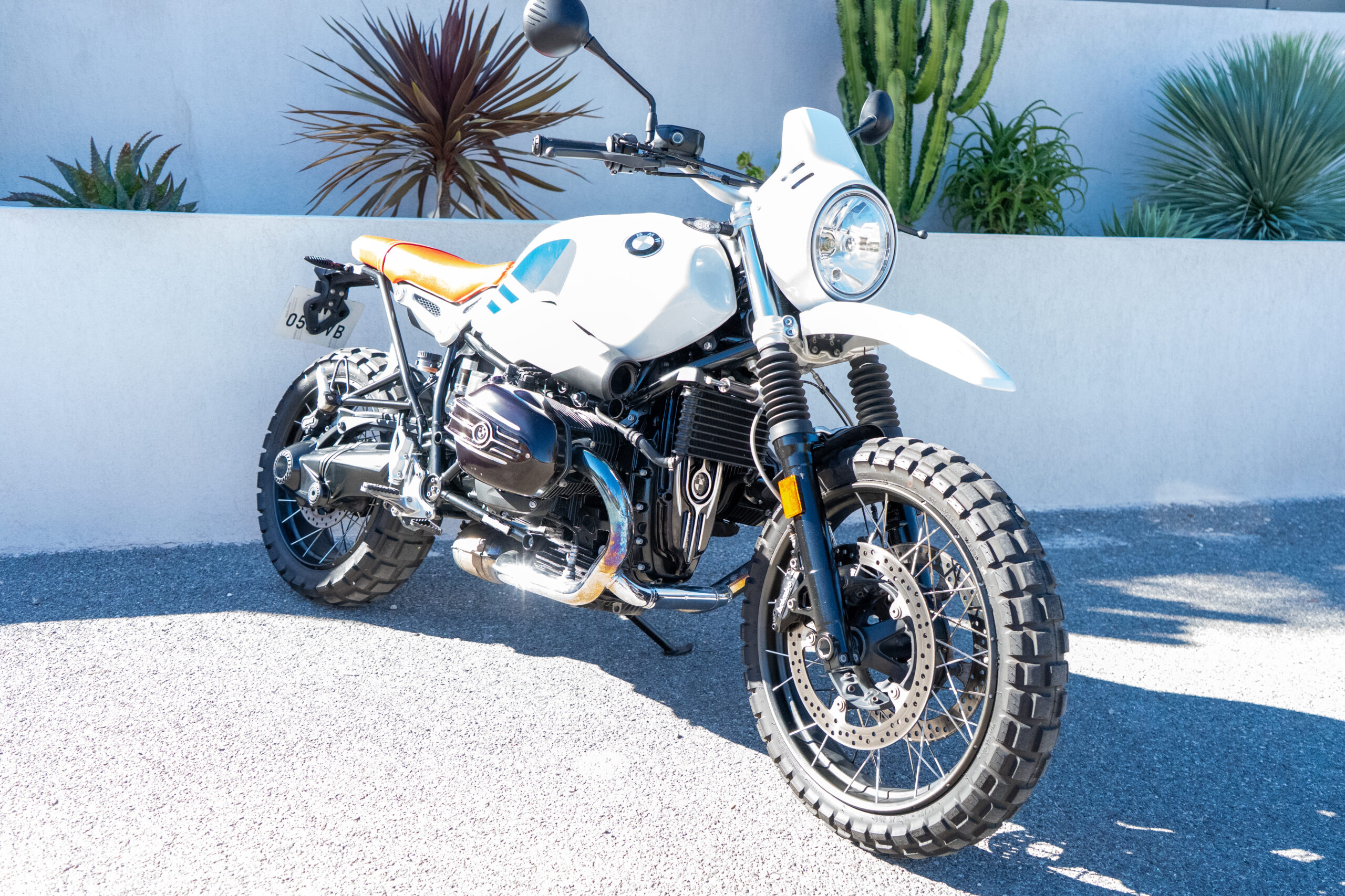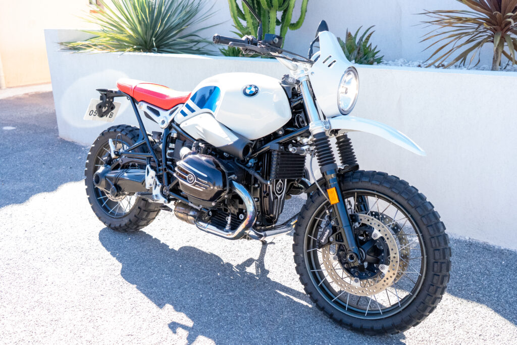 La BMW R Nine T Urban G/S 2017 est une moto néo-rétro inspirée de la légendaire R80 G/S, alliant style classique et performances modernes. Équipée du bicylindre à plat de 1 170 cm³ développant 110 ch, elle offre un caractère moteur typiquement BMW, souple et plein de couple. Son design évoque l’esprit des trails des années 80, avec son garde-boue haut, sa selle plate et sa teinte blanche agrémentée de touches bleues et rouges. Construite sur une base robuste et personnalisable, elle séduit autant par son look vintage que par son comportement dynamique sur route, alliant confort, authenticité et plaisir de pilotage.